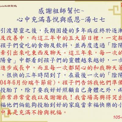 善信陳怡靜 湯七七 感謝函
